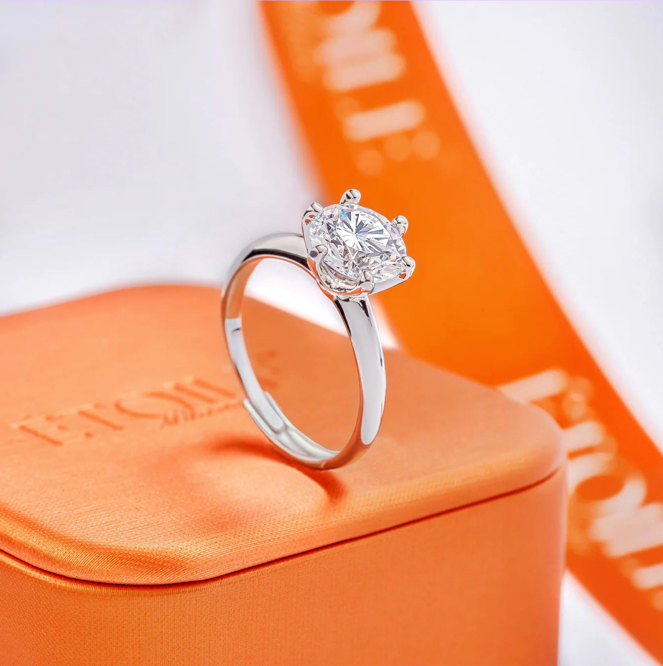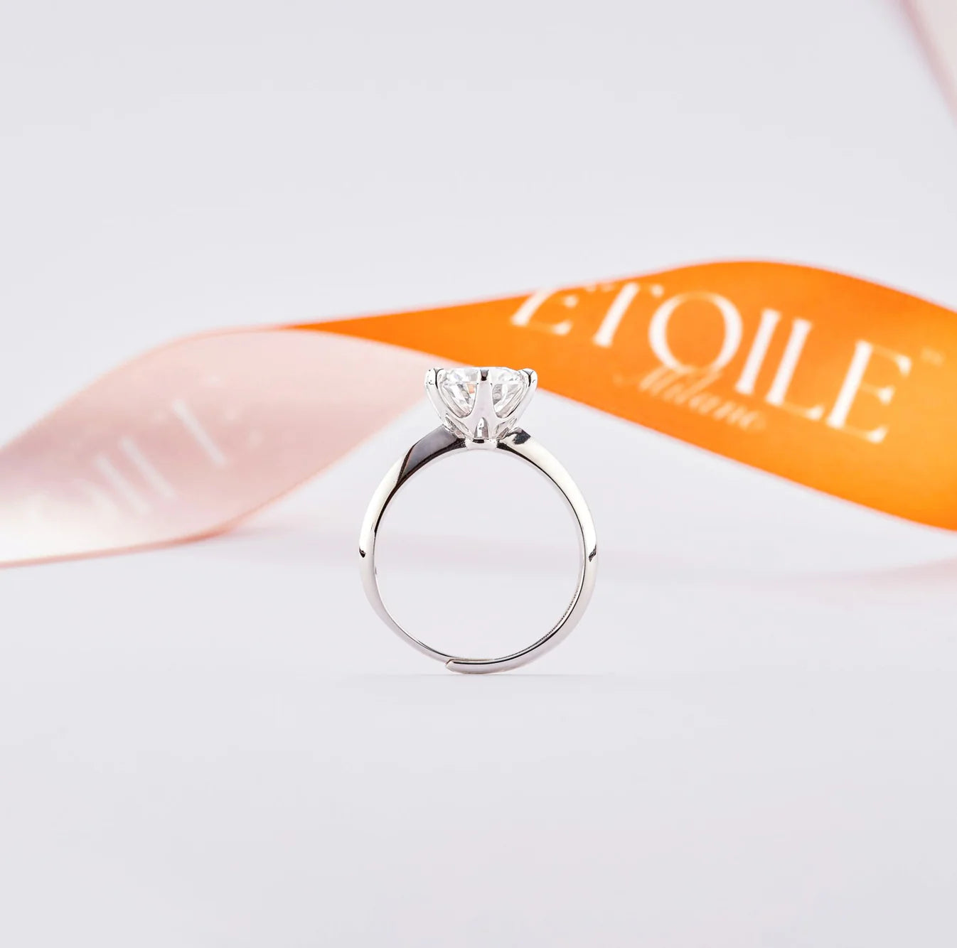 Se encomendar agora, um pacote Étoile será entregue na sua casa no prazo de 1-2 dias úteis com: o anel Étoile à sua escolha, a caixa Étoile cor de laranja e o certificado de autenticidade da moissanite.