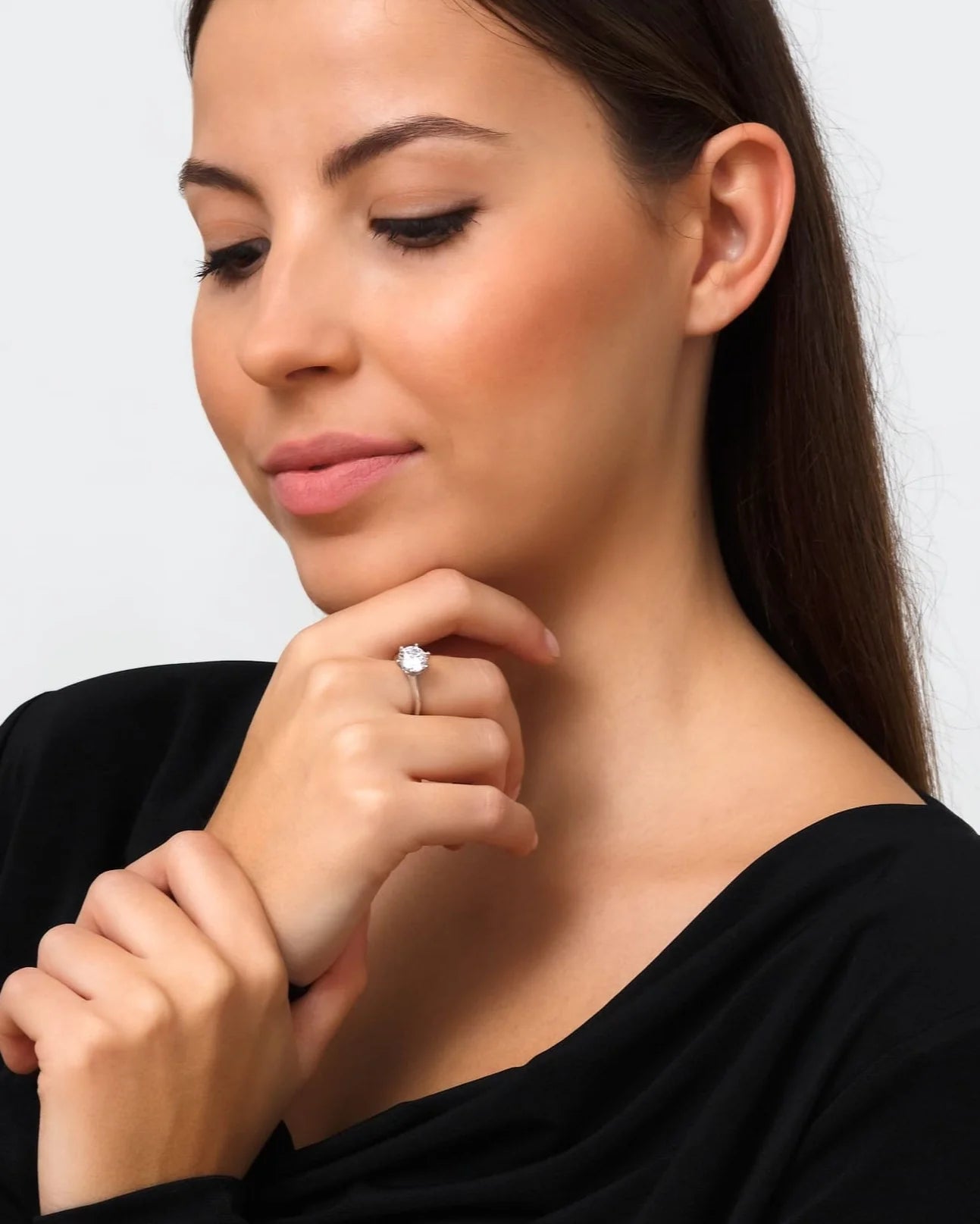 No Anel Real, o cristal Étoile™ é colocado num anel de prata 925 banhado a platina com 8 camadas, que brilha mais do que o ouro branco.